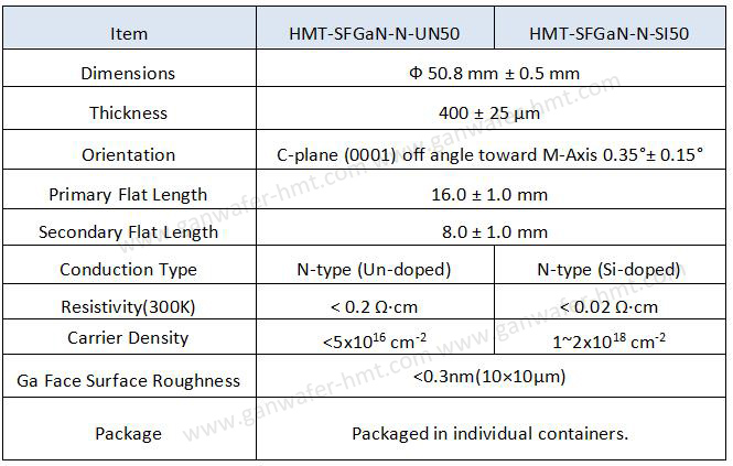 我司HMT作为氮化镓晶片(GaN氮化镓衬底片)的专业生产厂家,可提供2英寸氮化镓自支撑衬底晶片,导电类型主要分为N型非掺杂,N型硅掺杂以及半绝缘型铁掺杂。GaN自支撑衬底片TTV≤15um,BOW:≤20um,包装方式为单个晶圆盒或Cassette盒。氮化镓材料和碳化硅材料是电力电子应用中最先进的宽禁带技术,电力电子应用氮化镓材料具有一个更大的带隙,可以进一步提高功率器件性能。